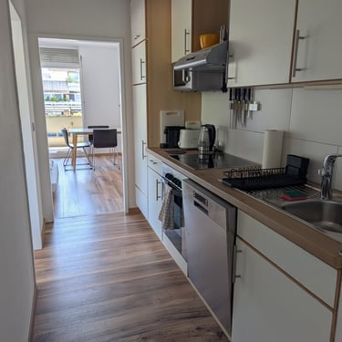 Die Wohnung ist komplett möbliert und voll ausgestattet inklusive Bettwäsche, Handtücher, Küchenutensilien, Besteck, Fernseher, Waschmaschine, Internet, usw. Die Wohnung verfügt über: