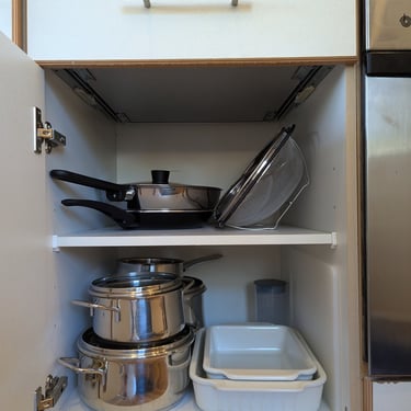 Küche mit Backofen, Herd, Kühl-Gefrierkombination und Geschirrspüler