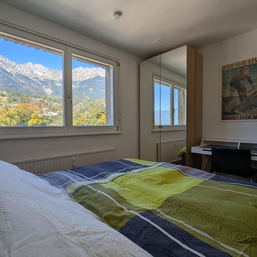 Diese helle Wohnung mit einem Schlafzimmer befindet sich im 8. Stock eines gepflegten Wohnhauses und ist bequem mit dem Aufzug erreichbar. Sie bietet einen traumhaften Blick auf die Nordkette sowie einen modernen, gemütlichen Wohnbereich. Ideal für ein bis zwei Personen.