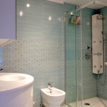 1 Badezimmer mit Dusche, Bidet und Waschmaschine