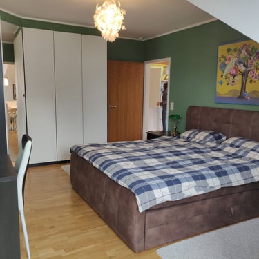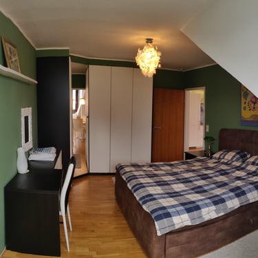 1 Schlafzimmer mit Doppelbett, Kleiderschränke und Schreibtisch